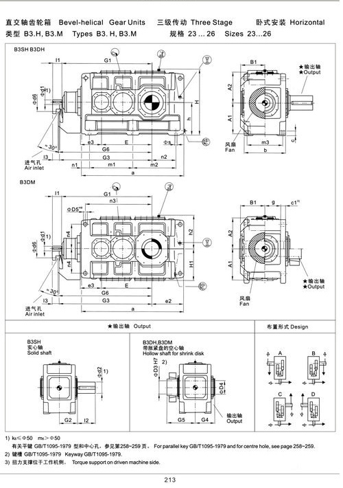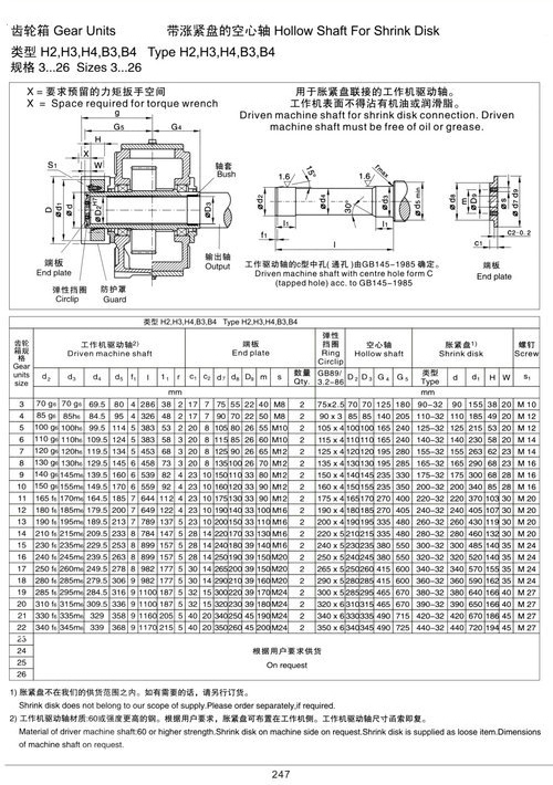 带平键的实心轴、带平键的空心轴、胀紧盘联结的空心轴、花键联结的空心轴、花键联结的实心轴和法兰联结的实心轴。